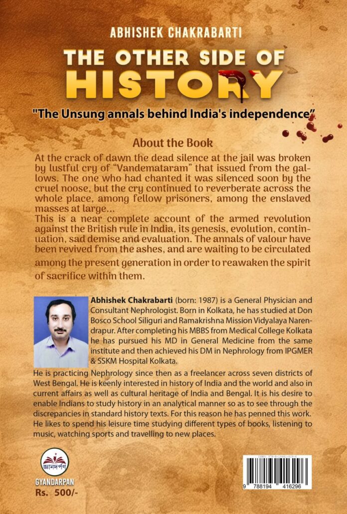 The book, “THE OTHER SIDE OF HISTORY: The Unsung annals behind India’s independence” by Abhishek Chakrabarti intends to make amends. Written in a concise manner using lucid language and yet containing tons of information from credible sources this book will definitely help to fill in the huge gaps left in the official version. It is a must read not only for history nerds but for all people of India who want to see our nation reach great heights of success. It has the potential to reignite the fire of patriotism that has remained extinguished for several decades following independence. The author has provided his email id also in the book to enable the readers to contact him with their valuable feedback that can further enrich this commendable piece of work.